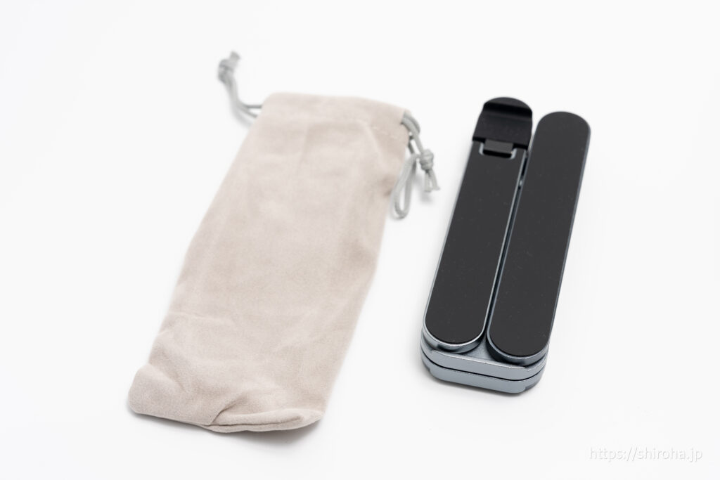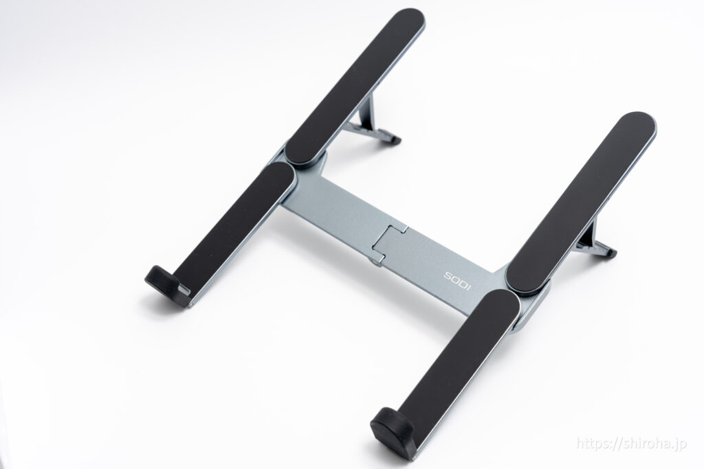 軽量タイプはSODI ノートパソコンスタンドがおすすめです。ガジェットポーチに収納できるコンパクト設計で、安定感もあります。Boyataは自宅固定(個人PC)、SODI ノートパソコンスタンドは出社・出張用(会社PC)と使い分けることで毎回スタンドを準備する手間を省くこともできます。