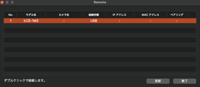 - カメラとPCをUSB接続し、Imaging Edge DesktopのRemoteを起動する