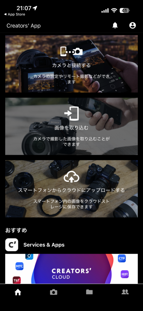 - 注意:機種やアップデート状況によっては、Imaging Edge MobileではなくCreators’ Appの利用推奨
